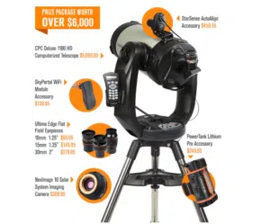 You can enter the Celestron’s Dream Telescope Giveaway from Celestron for your chance to be the grand prize winner of a CPC Deluxe telescope 1100HD Computerized Telescope! The prize also includes…